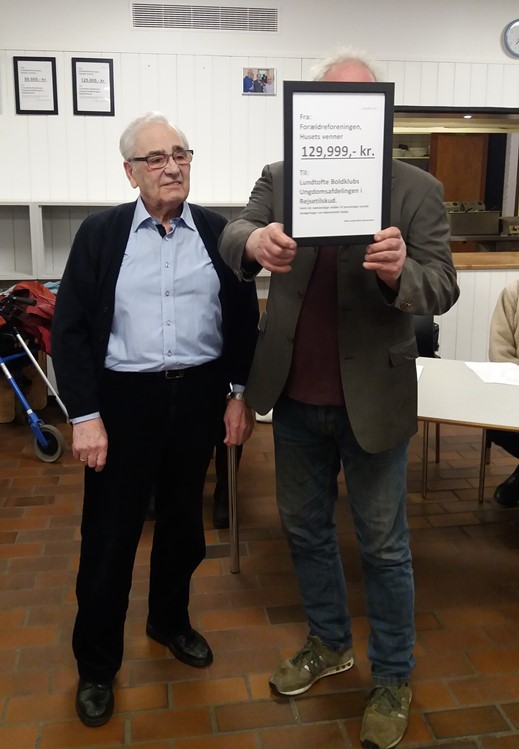 Denne gang kunne formand Leif overrække klubben en check på 129.999 kroner til ungdomsarbejdet, og det er helt fantastisk!