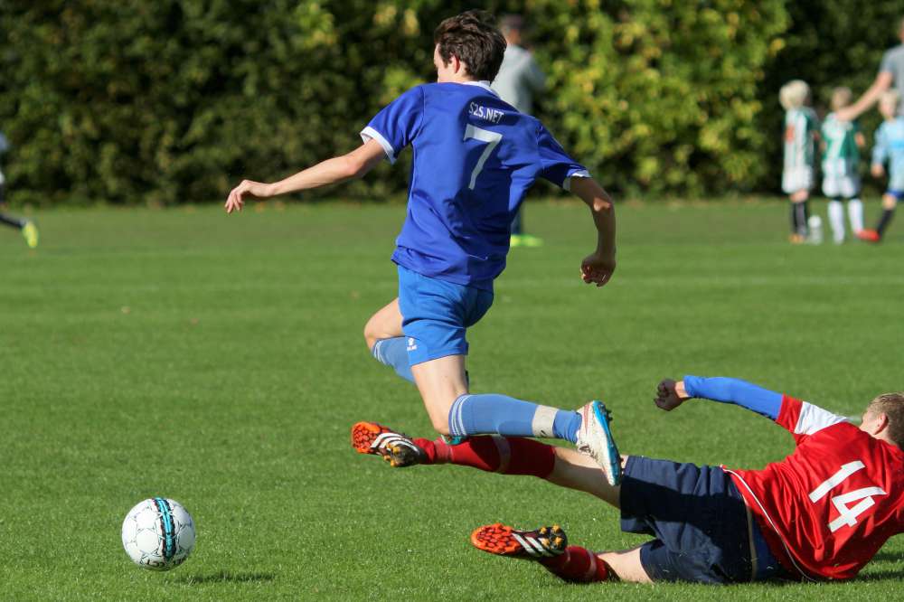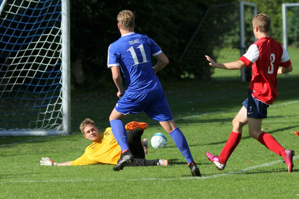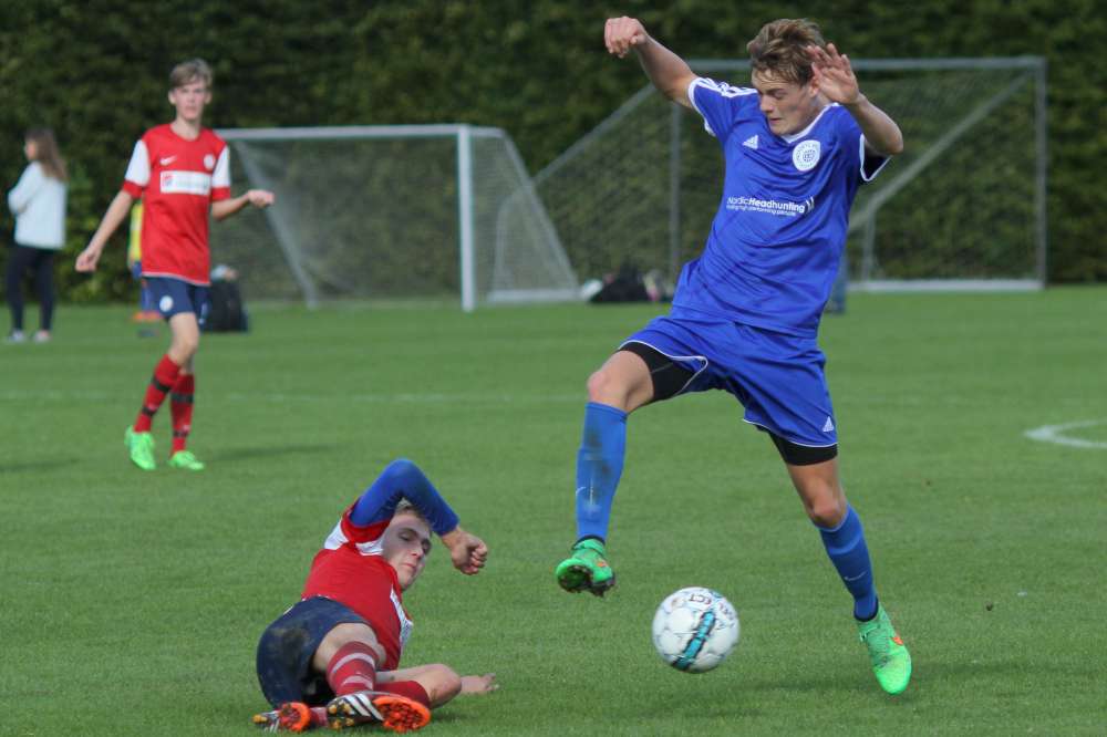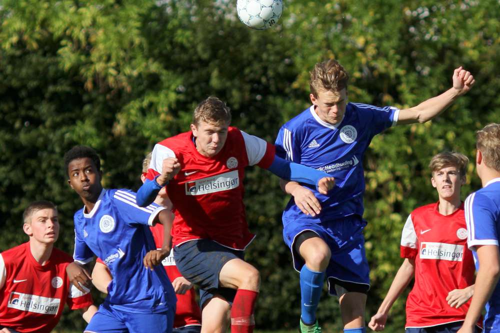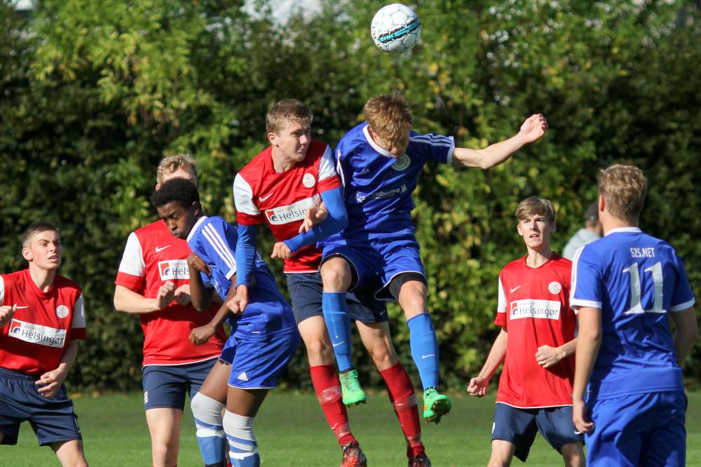 Og 3-0 er bare den "farlige føring" for U19. Helsingør startede anden halvleg med et godt pres og fik også flyttet spillet længere frem på banen. Helt farligt blev det ikke, men de havde 20 gode minutter, hvor vi glemte at holde os til det, vi er bedst til. En kæmpe chance til Lundtofte belv sparket lige på Helsingørs målmand, og derefter gik det stærkt den anden vej. Og selv om Isgren tog en banespurt for at følge med Helsingørs bedste mand, så måtte han give fortabt til sidst, da Helsingørspilleren tordnede bolden i kassen fra kanten af feltet. Et klassemål - respekt for det. Reduceringen gav Helsingør lidt tro på sagen, men bare 7 minutter senere gav Lundtoftes spilovertag gevinst, da Seb scorede til 4-1. Vi havde fundet tilbage til bredden i spillet, og Helsingør blev presset langt bagud. Efter 36 minutter i anden halvleg fik Lundtofte frispark langt ude på banen. Spork valgte at sparke på mål, selv om der var 35 meter ind. Men men men ..... Et fuldstændig rent spark og kuglende hamrede ind lige under overliggeren - klasse og forståelig jubel fra Spork og kammeraterne.