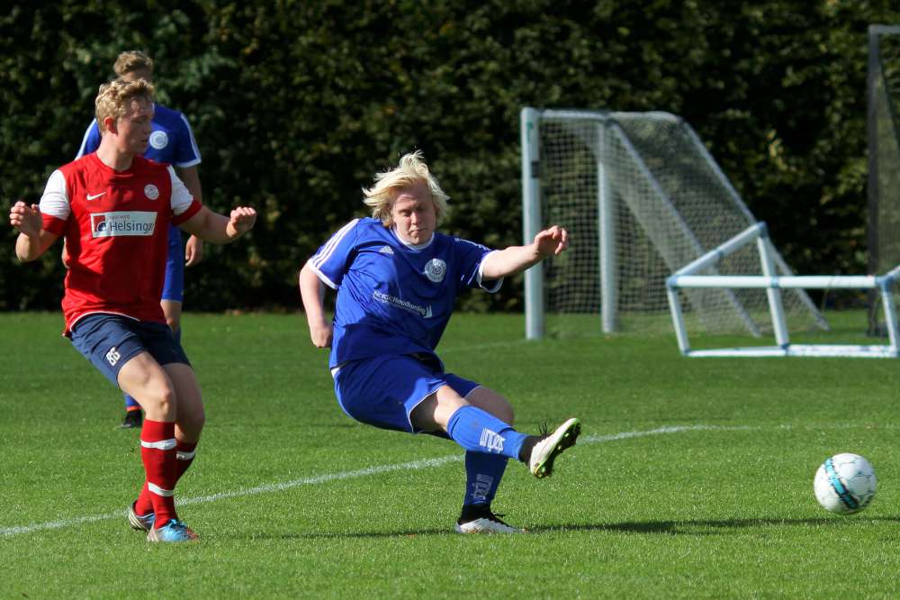 Og drengene tog oplægget til sig og var klar fra start. Lundtofte sad på spillet fra første fløjt og havde allerede efter 2 minutter en kæmpe chance. Vores kanter skabte en god bredde og gav desuden mange spilmuligheder på midten af banen. Og vi producerede chancer på samlebånd, men manglende skarphed betød, at der skulle et straffespark til, før der kom gang i scoringen. Efter 8 minutter blev Seb fældet i feltet, og han scorede selv sikkert. Det gav ro på spillet - næsten for meget ro. Det var som om, spillerne allerede tænkte "den er hjemme". Lundtofte havde næsten alt spillet og alle mulighederne, mens Helsingør ikke fik mange muligheder i første halvleg. Der skulle dog gå 32 minutter før der igen blev scoret. Valdemar, som havde sneget sig med frem, blev spillet i dybden og prikkede bolden forbi målmanden. Et flot angreb sat op helt nede bagfra og med Valdemar som hovedperson i både opspil og som afslutter - fuldt fortjent, at han også kom på tavlen. Med 2 minutter tilbage af første halvleg kunne Seb øge føringen efter en smart aflevering fra Ibra. 3-0 ved pausen.