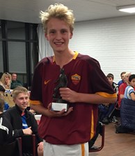Årets ungdomsspiller i Lundtofte BK, med den traditionsrige vandrepokal. Mads Jul Bjørn har i løbet af den tid vist super gode lederevner og har ubestridt været anfører på årgangens 1. hold gennem de sidste 7 år. Senest har Mads som anfører stået i spidsen for holdet, som både i forårsturneringen og efterårsturneringen 2015 ikke har tabt en eneste kamp i DBU turneringen. Mads er en meget teknisk dygtig spiller og er den spiller på årgangen med den absolut bedste boldforståelse. Mads læser spillet godt, han har en rigtig god timing i sit spil og er i stand til sætte sine medspillere op med ultra-præcise afleveringer. Udover at være en model som holdspiller kan Mads også med sine individuelle aktioner f.eks. afdrible en 3-4 modspillere og har scoret mange afgørende mål i tætte kampe med bl.a. sine perfekt udførte frisparksmål. Sidst men ikke mindst er Mads meget vellidt af spillere såvel som trænere, og han er en rigtig god kammerat overfor alle spillere uafhængigt af om de spiller på 1. holdet, 2. holdet eller 8-mands fodbold. |